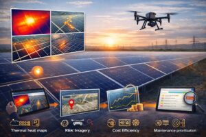 - Scalable & Repeatable – Drone inspections can be scheduled periodically, ensuring consistent monitoring and performance benchmarking over time.